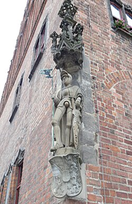 Statue des Heiligen Mauritius an einer Hausecke der Stadtverwaltung vonJüterbog